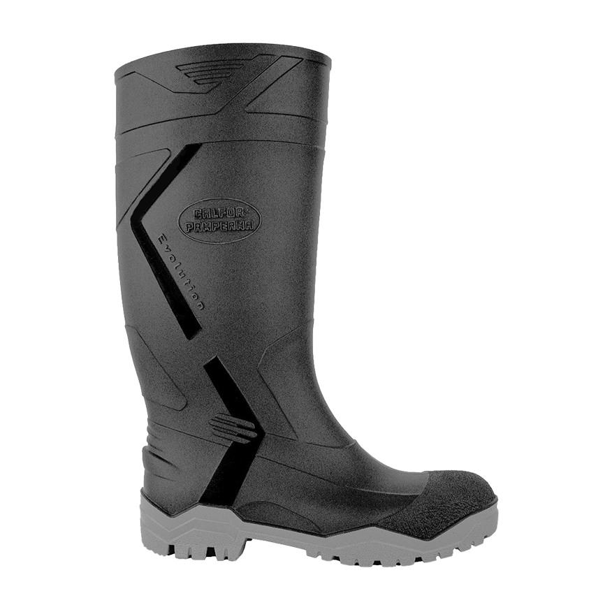Bota de PVC con puntera de acero, certificada. Diseñada especialmente para trabajos exigentes. Mas liviana y cómoda, sin perder protección.