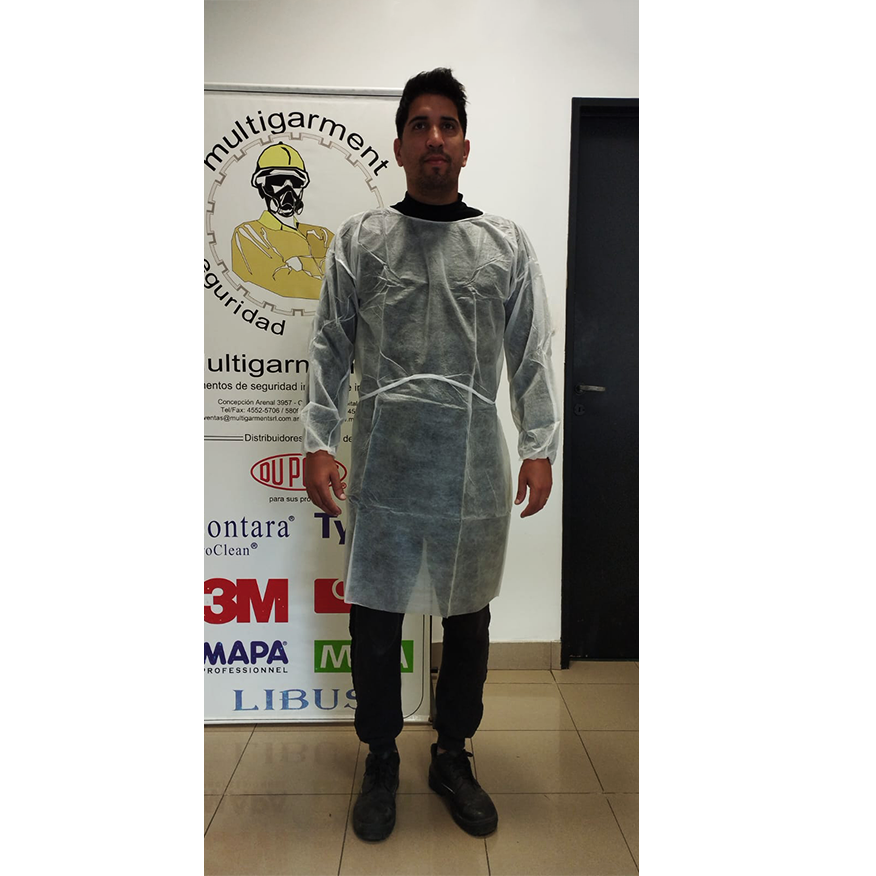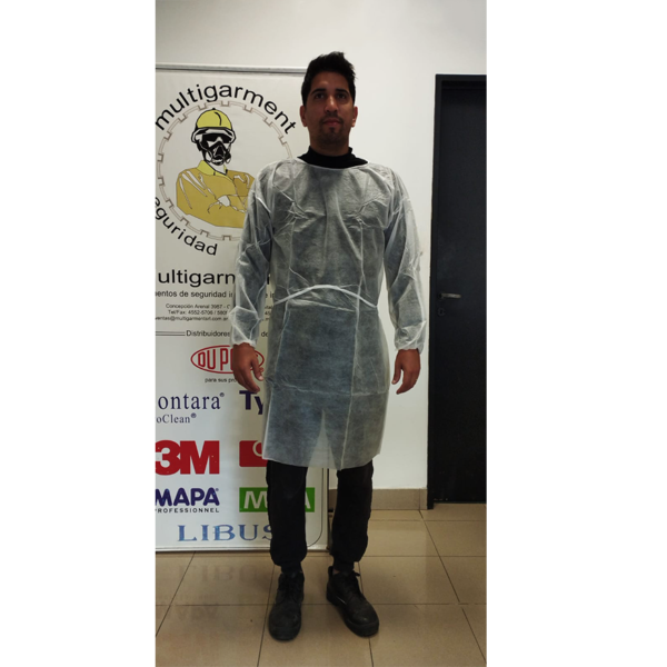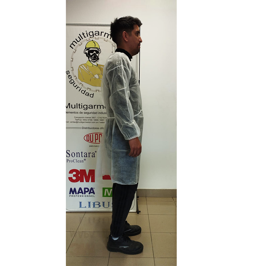 Camisolín descartable, cierre con tiras atrás y puños elastizados