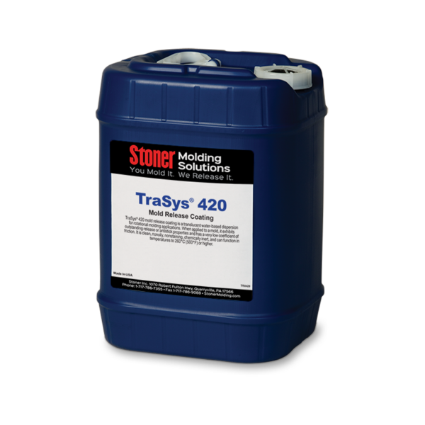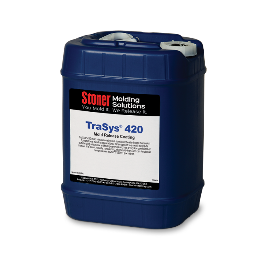 El recubrimiento desmoldante TraSys 420 es una dispersión translucida de base acuosa para aplicaciones de moldeo rotacional. Cuando se aplica a un molde, exhibe excelentes propiedades antiadherentes y de liberación y tiene un coeficiente de fricción muy bajo. Es limpio, no mancha, químicamente inerte y puede funciona a temperaturas de hasta 260ºC (500ºF) o mas.
