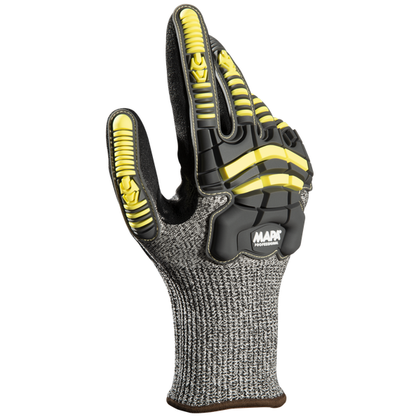 Guante anti impactos y con protección contra cortes (D) que ofrece una destreza y un agarre óptimos en entornos aceitosos (fabricado con tecnología Grip&Proof). Reforzado con almohadillas acolchadas en la palma y parche de nitrilo entre el pulgar y el índice.